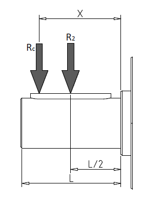 Если суммарная радиальная нагрузка не приходится на центр выходного вала, то её необходимо рассчитать по следующей формуле